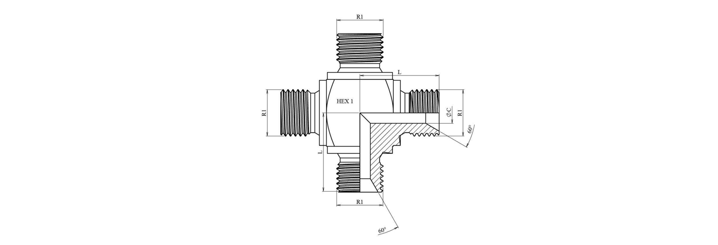 HYDRAULISCHE KREUZVERSCHRAUBUNG AUSSENGEWINDE BSP 1/4