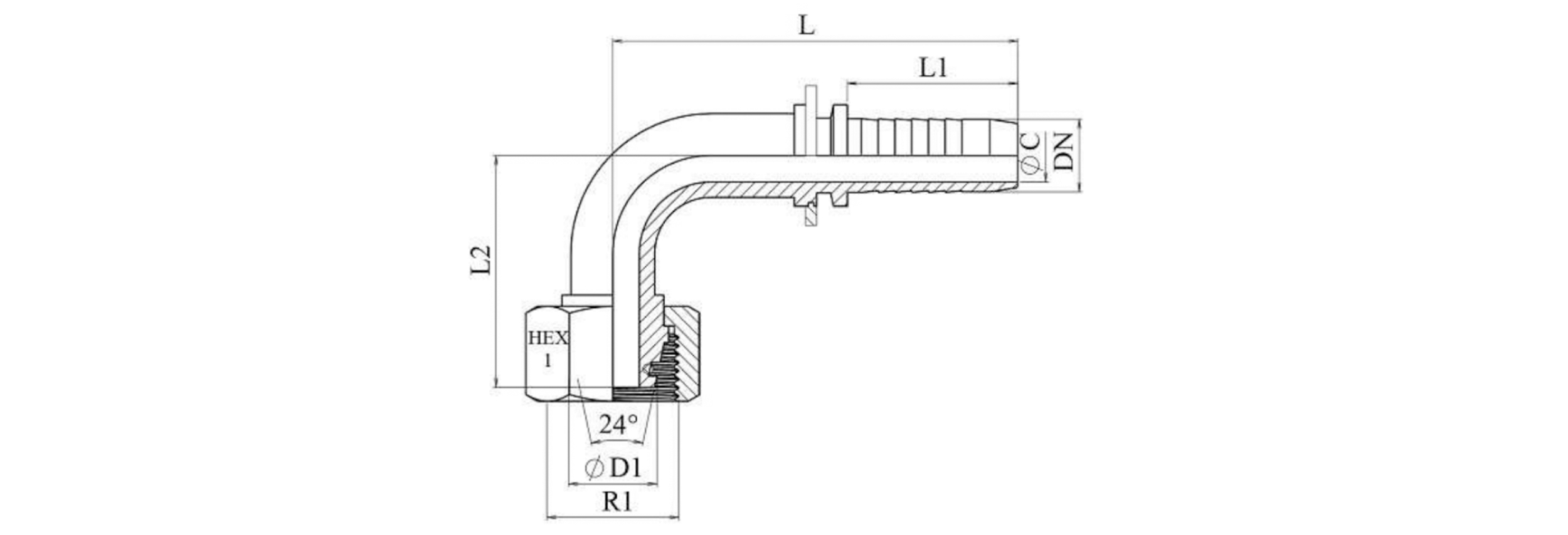 HIDRAVLIČNI PRIKLJUČEK DKOL 15 L ŽENSKI KOLENO 90 DN12-M22x1,5