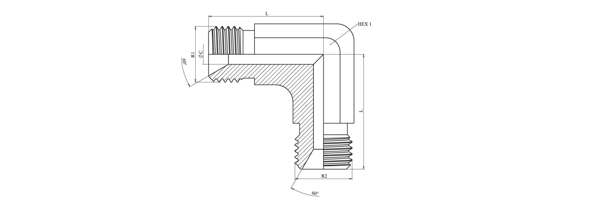 HYDRAULISK BEND 90° BSP KORT HAN-HAN 1/4