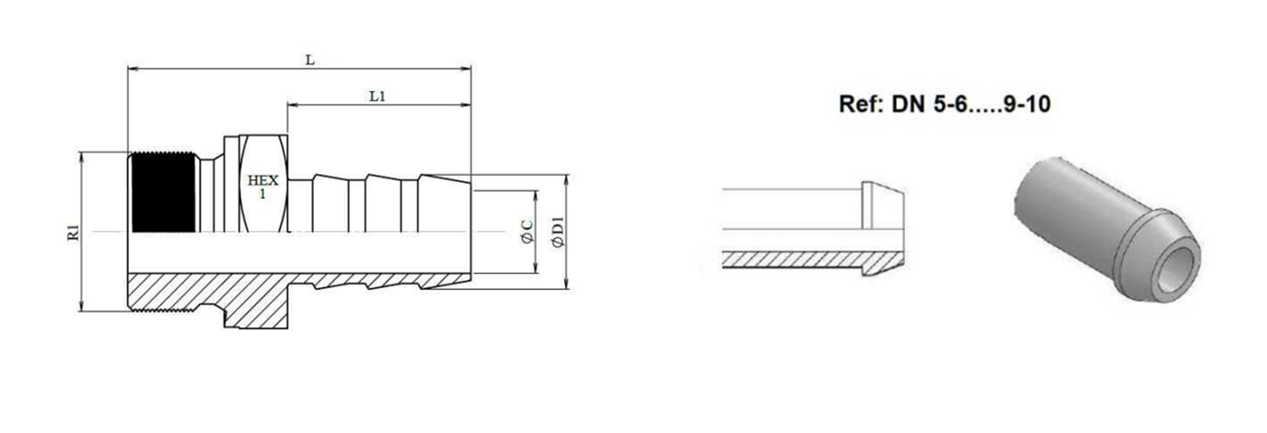 HYDRAULISK HANNKOBLING M22X1.5 FOR GUMMISLANGE Φ 12-13