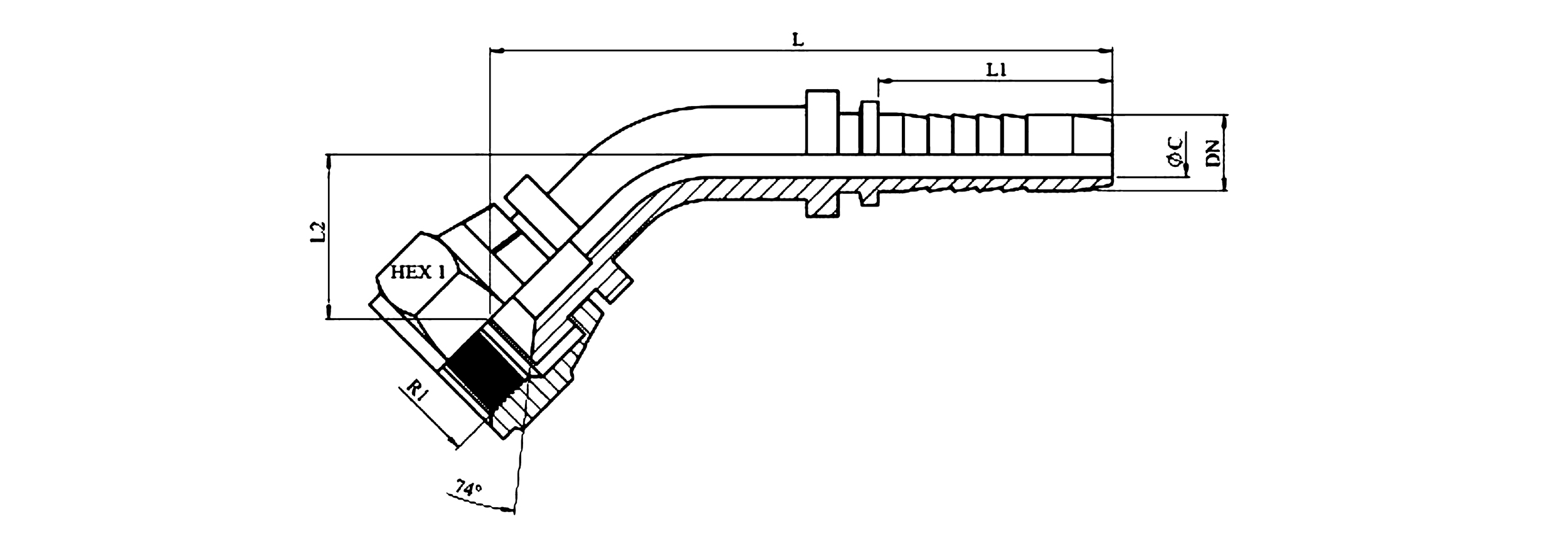 HYDRAULISK TILKOBLING BSP HUNN ELBOW 45° DN19-3/4