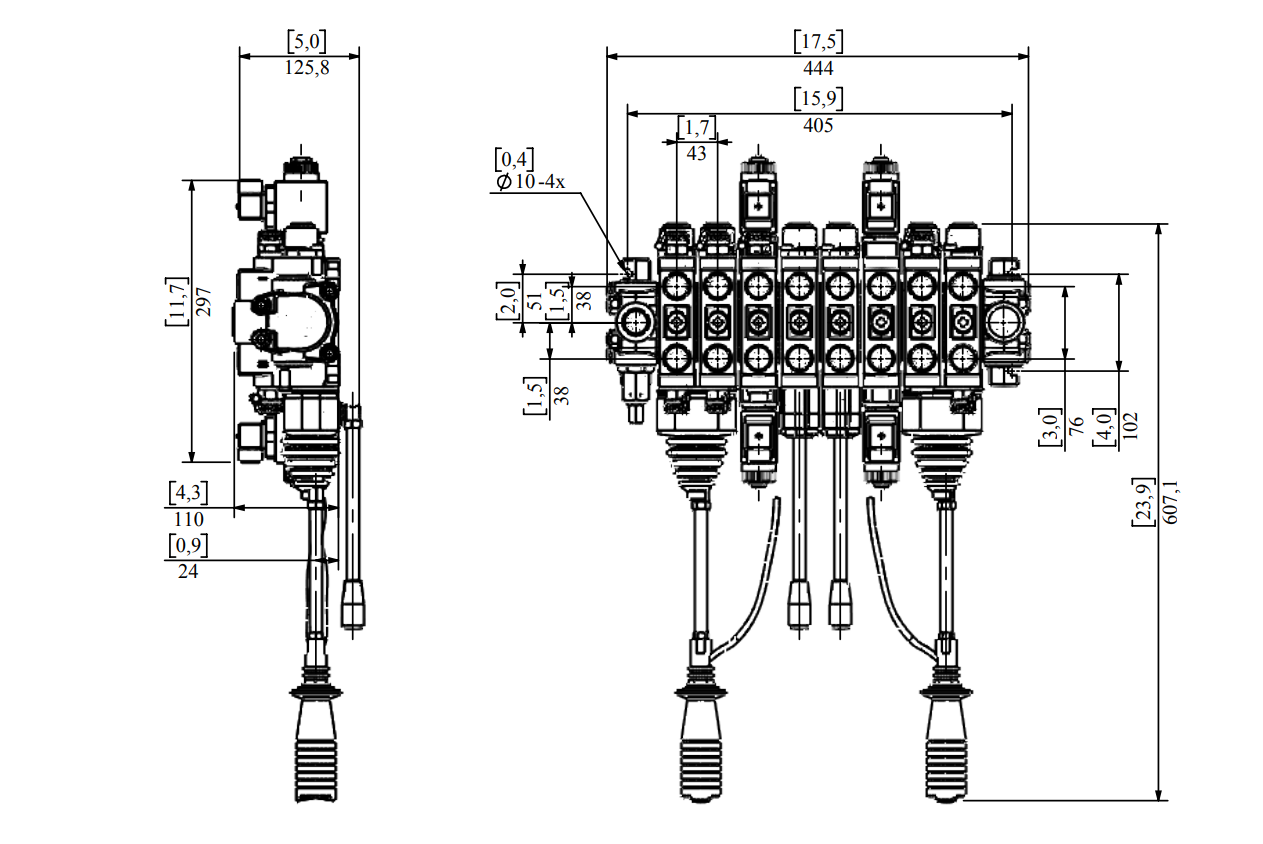 HYDRAULISK VENTIL HIAB 8XPC70 + 2X JOYSTICK - ELEKTRISK KONTROLL 12V