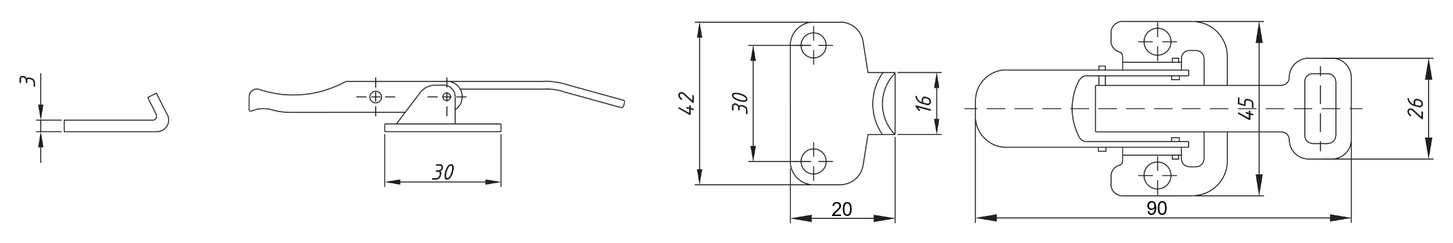 Robust sidelukking type NAPA L, beregnet for traktor-tilhengere og transportkjøretøyer med større last. Det er en forsterket utforming av låsen, som sikrer sikker og stabil lukking selv med tyngre belastning. Laget av robust materiale designet for lang levetid og motstand mot mekanisk påkjenning. Vippehåndtaket gir enkel bruk og rask lukking.