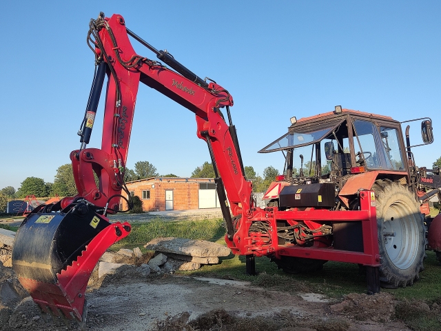 Ett exceptionellt projekt av vår kund, som skapade en arm för att koppla till traktorn för att gräva och lasta olika typer av material.